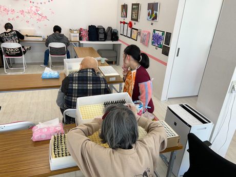 障がい者向けデイサービス施設で折り紙やミサンガのクラフトなど